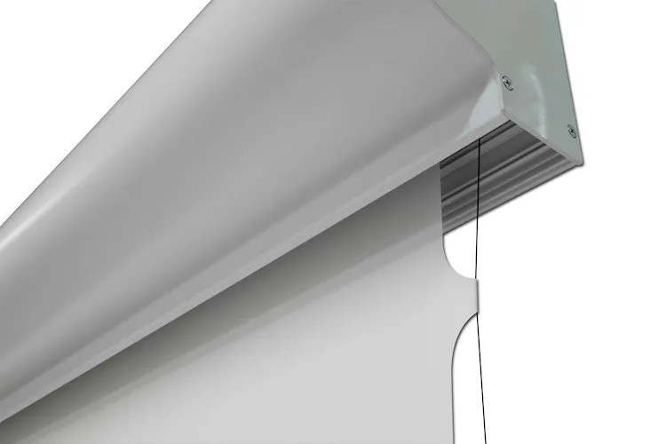 Pręt obciążający w kształcie kropli chowa się szczelnie w obudowie, tworząc zamknięty wygląd. Chroni to tkaninę ekranu projekcyjnego i wewnętrzną mechanikę przed wpływem czynników zewnętrznych, gdy nie jest używany. Obudowa z tłoczonego aluminium z płaskimi osłonami bocznymi może być wygodnie i elastycznie montowana za pomocą swobodnie pozycjonowanych uchwytów montażowych ściennych i sufitowych.