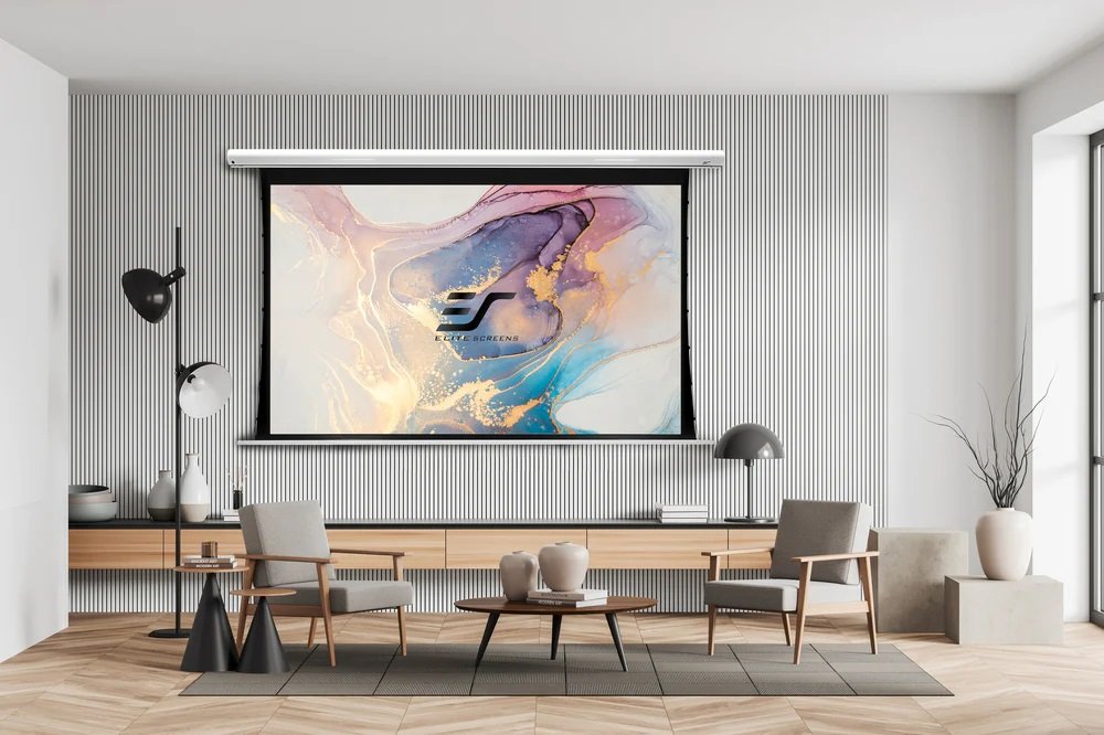 Ekran Elektryczny Ścienno-Sufitowy Z Napinaczami Elite Screens Saker Tab Tension SKT150XHW2-E6 332 x 187 cm 150 cali 16:9 Top Drop 15 cm Max White FG Biały