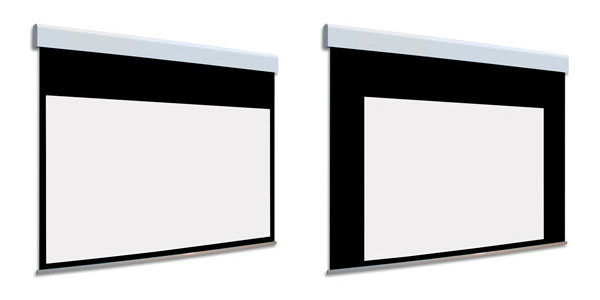 Ekran Elektryczny Ścienny Sufitowy Z Dwoma Powierzchniami Projekcyjnymi Adeo BiFormat B05 250 2500 16:10 Vision White Pro Reference White Grey + Czarne Ramki 5 cm 50 mm