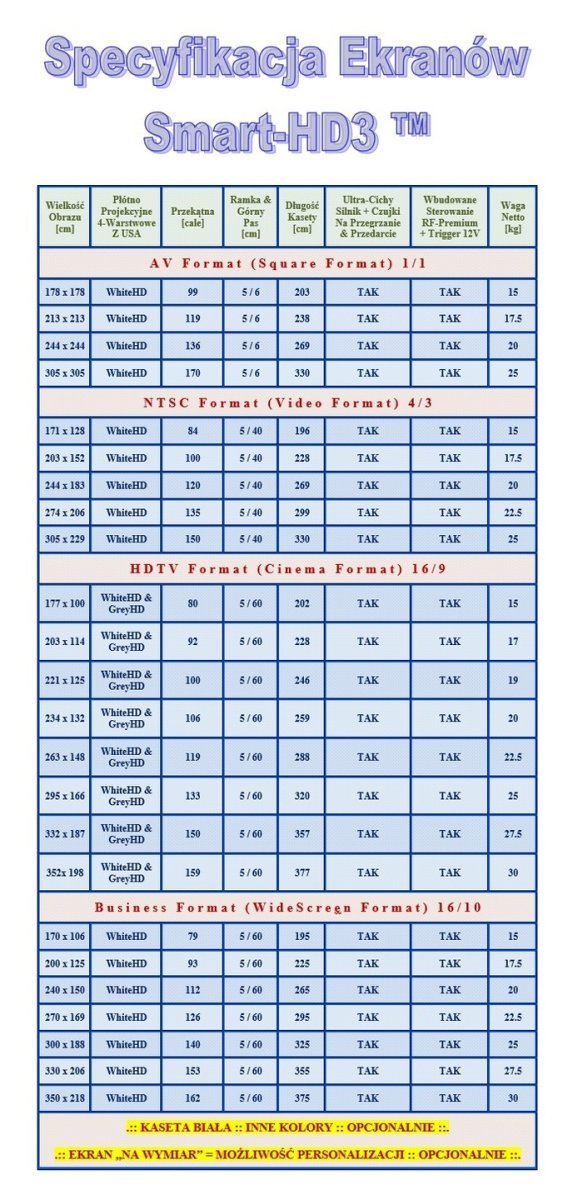 Ekran elektryczny seria Smart-HD3 kasetowy ścienno-sufitowy także do zabudowy indywidualnej w suficie podwieszanym lub wnęce