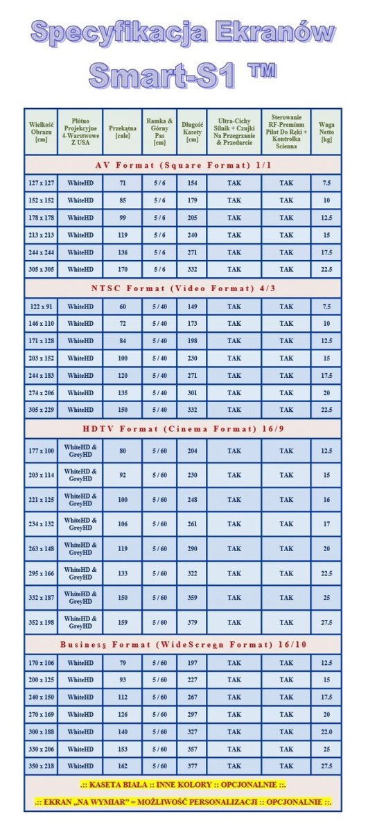 - Górny Pas Rozbiegowy :: Dla Formatu 16:9 Oraz 16:10 => 60 cm // Dla Formatu 4:3 => 40 cm :: Pozwala Na Dopasowanie Wysokości Oglądanego Obrazu Do Poziomu Oczu Widza
