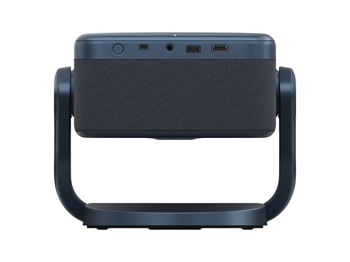 Ten kompaktowy projektor jest dostępny w metalicznym niebieskim kolorze, a dzięki regulowanemu wbudowanemu stojakowi obrazy mogą być wyświetlane w dowolnym kierunku – na ścianie, suficie lub podłodze. Łatwa obsługa, konfiguracja i poręczność pozwalają cieszyć się rozrywką w podróży.