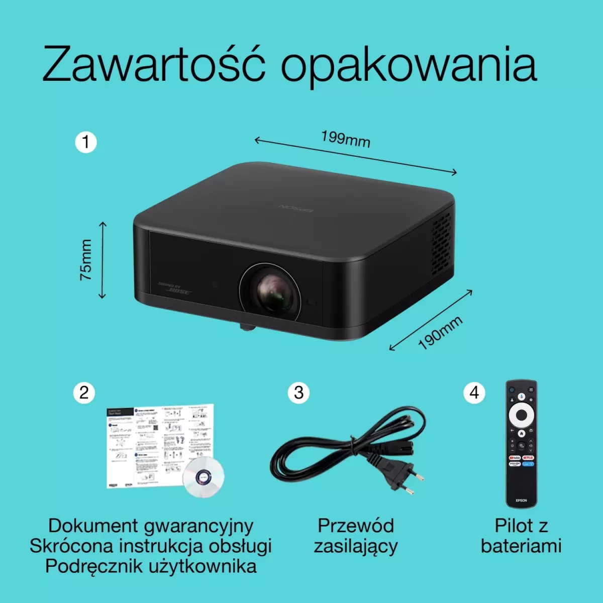 - Świadomość ekologiczna i dbałość poparte 5-letnią gwarancją* Firma Epson, lider w dziedzinie projektorów od 2001 roku, oferuje niezawodne produkty niewymagające konserwacji – to nawet 10-letnia wciągająca rozrywka objęta 5-letnią gwarancją, która zapewnia dodatkowy spokój ducha.