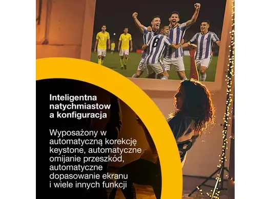 Inteligentne dopasowanie ekranu, automatyczna korekcja geometrii obrazu, unikanie przeszkód i regulacja koloru ścian w kilka sekund