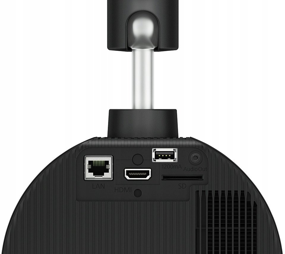 - Dyskretny projektor do reklam: Subtelna, czarna obudowa nie przyciąga uwagi