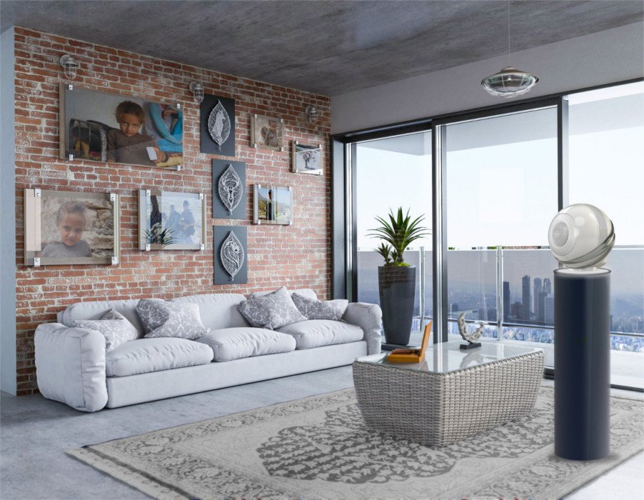 Dekoracyjny głośnik francuskiego projektu jest wyposażony w najbardziej wydajne materiały: membranę z włókna węglowego i włókna szklanego, rozpraszacz i przetworniki z aluminium, wzmocnioną podwójną powłokę z włókna kompozytowego.