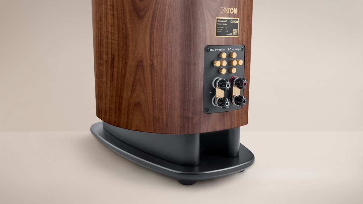 Głośniki Reference 5 są wyposażone w wysokiej jakości złącza WBT nextgen™ i umożliwiają podłączenie w trybie bi-wiring i bi-amping. Złącza te stanowią podstawę doskonałej jakości dźwięku i zapewniają długotrwały, stabilny kontakt. Jeśli nie chcesz korzystać z trybu bi-wiring lub bi-amping, w zestawie znajdują się wysokiej jakości mostki z miedzi pokrytej twardym złotem. Głośniki Reference 5 są wyposażone w regulatory technologii RC (Room Compensation) firmy Canton na terminalu głośnika. Dzięki tej regulacji poziomu można precyzyjnie dostosować poziom ciśnienia akustycznego głośnika średniotonowego i wysokotonowego w krokach co 1,5 decybela. Pozwala to na optymalne dostosowanie głośników do osobistych preferencji słuchowych i akustyki pomieszczenia.