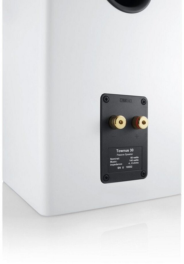 Kompaktowe głośniki bass reflex Townus 30 wyróżniają się ponadczasowym, eleganckim wyglądem i doskonałymi właściwościami dźwiękowymi. Pomimo niewielkich rozmiarów, te atrakcyjne 2-drożne głośniki bass reflex oferują mocny, głęboki bas i niesamowitą dynamikę. Zrównoważone brzmienie, jednorodność i pełny zakres częstotliwości sprawiają, że kompaktowe głośniki Townus 30 są uniwersalnym rozwiązaniem do odtwarzania wszelkiego rodzaju muzyki. W kompaktowych głośnikach bass reflex wysokiej jakości komponenty techniczne zapewniają znane, dobre brzmienie Canton i niezwykle wysoką niezawodność. Dwa przetworniki głośnikowe, 174-milimetrowy głośnik niskotonowo-średniotonowy z membraną tytanową i 25-milimetrowa kopułka wysokotonowa z ceramiki tlenku glinu, odpowiadają za odtwarzanie muzyki w atrakcyjnym modelu Townus 30. Dzięki technologii Wave-Sicken i naszej opatentowanej technologii DC głośniki Townus 30 zawsze grają w sposób kontrolowany. Wreszcie, precyzyjnie obliczony falowód głośnika wysokotonowego zapewnia optymalizację promieniowania dźwięku i sprzężenia 2-drożnego głośnika, który gra pewnie aż do 40 000 herców.