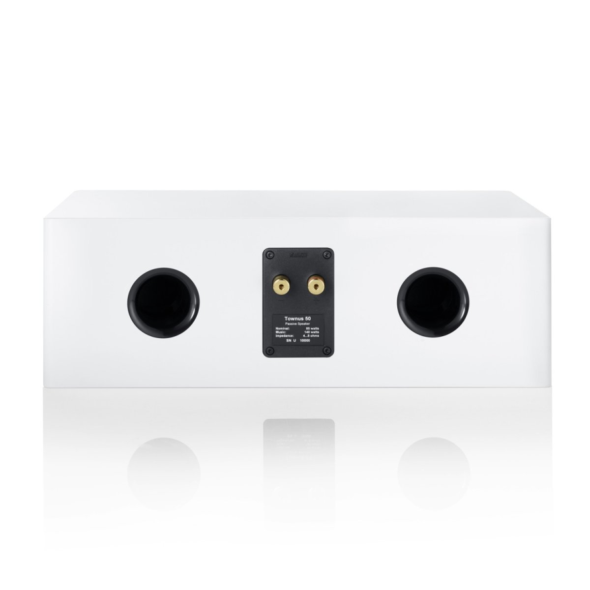 Głośnik centralny Townus 50 z bass-reflexem charakteryzuje się ponadczasowym, eleganckim wzornictwem i doskonałymi parametrami dźwięku, dzięki czemu stanowi centralny element wydajnego systemu kina domowego. Mocny, głęboki bas, zrównoważone strojenie i znakomita dynamika czynią go idealnym głośnikiem centralnym – wliczając w to krystalicznie czyste odtwarzanie dialogów. Townus 50 Center wyposażony jest w wysokiej jakości komponenty techniczne, gwarantujące znane, dobre brzmienie Canton i niezwykle wysoką niezawodność. Dwa 154-milimetrowe przetworniki nisko-średniotonowe z tytanową membraną, zawieszone w obudowie o długim skoku i niskich zniekształceniach, oraz 25-milimetrowa kopułka wysokotonowa z ceramiki tlenku glinu z precyzyjnie zaprojektowanym falowodem zapewniają idealną dyspersję dźwięku do 40 000 Hz.