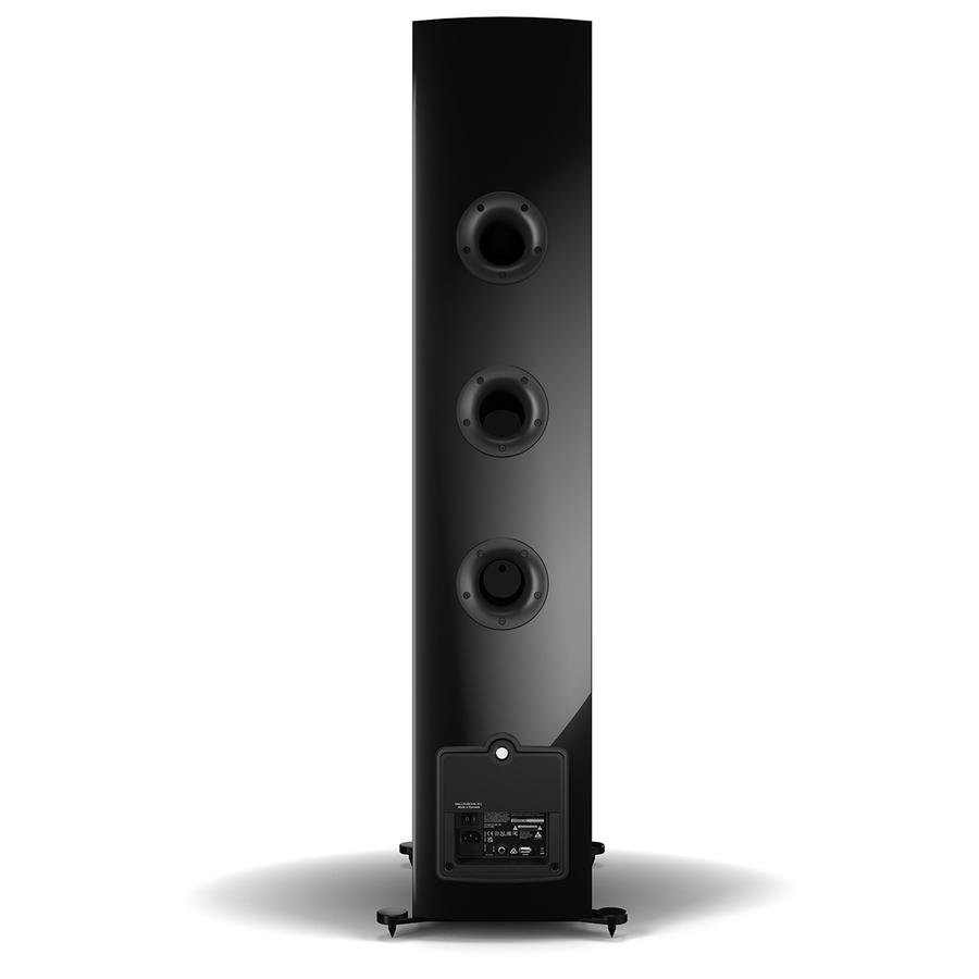 Dostępne w trzech wersjach wykończenia - biały połysk, czarny połysk i orzech włoski - kolumny podłogowe wyposażone są w gumowe nóżki, które utrzymują je we właściwej pozycji i pomagają zachować ich estetyczne i akustyczne walory.