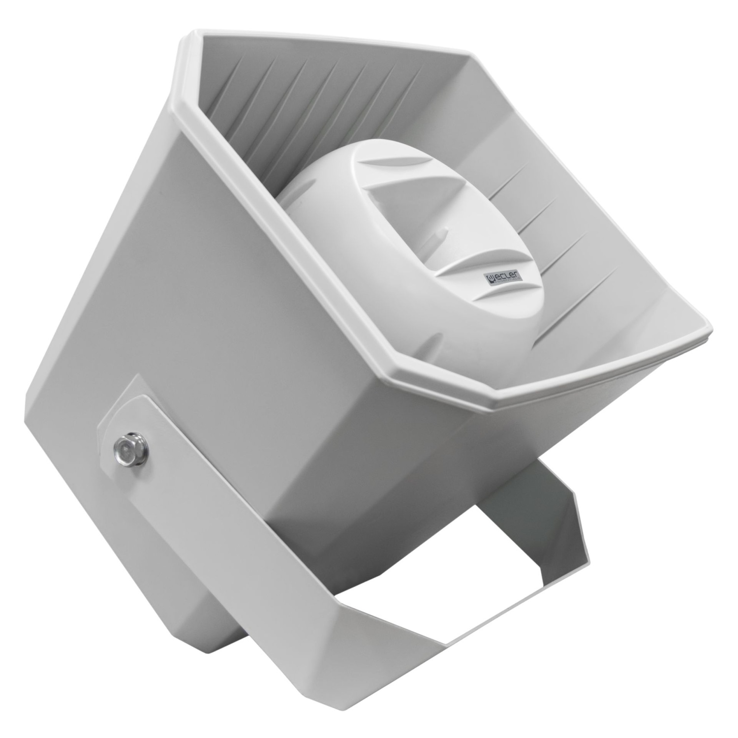 Głośnik tubowy, odporny na warunki atmosferyczne. Norma IP 66. Wbudowany transformator na linie 100 V z regulacją mocy: 50/25/12,5/9/4,5/3.5 W/8ohm @ 100V. Szary. Waga 5,2 kg