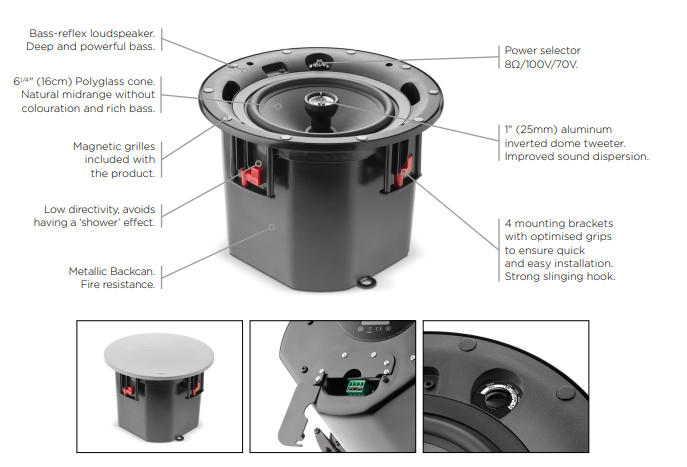 100V/70V or 8 Ω installations - Steel back can