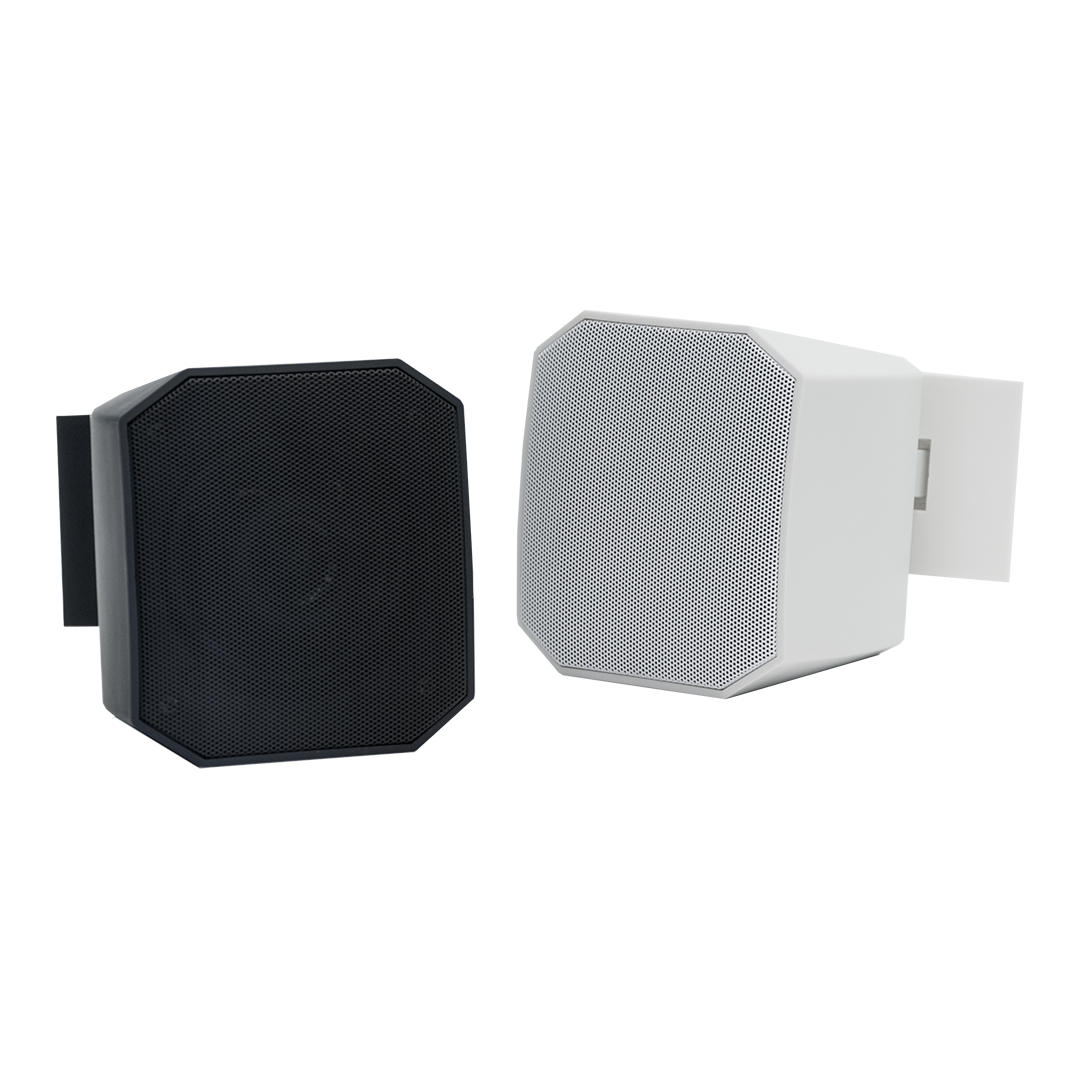 Głośnik do montażu na ścianie z 3" przetwornikeim niskotonowym i 1" przetwornikiem wysokotonowy. W zestawie uchwyt do montażu na ścianie. Moc 15W (16Ω), Odczepy transformatora: 100V/15W-7,5W-16Ω, 200-20'000 Hz, 86 dB (1W/1m). Wymiary 145x107x98mm, obudowa z tworzyw sztucznych, Stalowy grill oraz uchwyt. Kolory: Biały (RAL9016), Czarny (RAL9017).