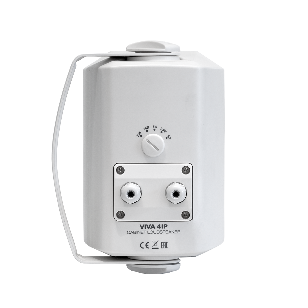 VIVA4IP - elegancki głośnik w obudowie o współczesnym designie, o gładkiej powierzchni do użytku na zewnątrz, stopień ochrony IP 55. Unikalny półokrągły uchwyt montażowy w kształcie litery U oraz obrotowe logo AMC umożliwiają montaż w poziomie i w pionie pod różnymi kątami. Ultracienki, płaski i elegancki selektor mocy znajduje się z tyłu głośnika. Ten dwudrożny głośnik jest wyposażony w 4-calowy przetwornik i 1-calowy jedwabny głośnik wysokotonowy. Dostępny w dwóch kolorach: czarnym i białym. Naturalny i czysty dźwięk głośników jest idealny do systemów muzyki w tle.