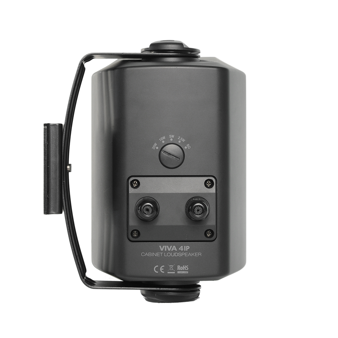 VIVA4IP - elegancki głośnik w obudowie o współczesnym designie, o gładkiej powierzchni do użytku na zewnątrz, stopień ochrony IP 55. Unikalny półokrągły uchwyt montażowy w kształcie litery U oraz obrotowe logo AMC umożliwiają montaż w poziomie i w pionie pod różnymi kątami. Ultracienki, płaski i elegancki selektor mocy znajduje się z tyłu głośnika. Ten dwudrożny głośnik jest wyposażony w 4-calowy przetwornik i 1-calowy jedwabny głośnik wysokotonowy. Dostępny w dwóch kolorach: czarnym i białym. Naturalny i czysty dźwięk głośników jest idealny do systemów muzyki w tle.