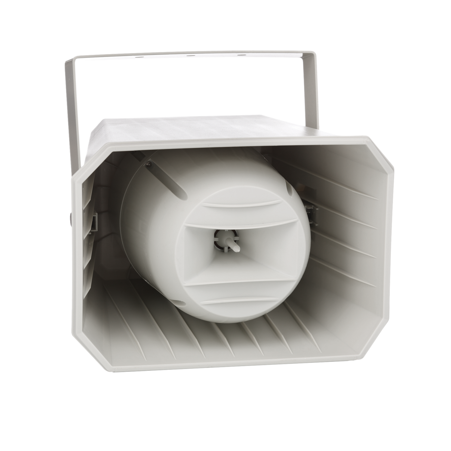 Dwudrożny, odporny na warunki atmosferyczne głośnik tubowy o wysokiej jakości dźwięku. Głośnik wykonany z wytrzymałego tworzywa ABS, uchwyt aluminiowy. Moc znamionowa 50W/8Ω. Wbudowany transformator z odczepami 100V/ 50W-25W-12,5W-8Ω, Pasmo przenoszenia 90-20 000Hz, Czułość 99 dB (1W/1m). Współczynnik ochrony IP55. Kolor szary jasny (RAL7035).