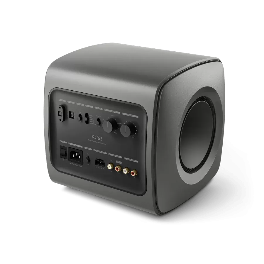 KEF KC62 to niesamowicie kompaktowy subwoofer, który zapewnia moc i magię głębokiego, dokładnego basu, tworząc ekscytujące a zarazem wciągające wrażenia muzyczne, filmowe i gamingowe. Stworzony przy użyciu innowacyjnej inżynierii firmy KEF, w tym przełomowej technologii Uni-Core™. Subwoofer KC62 jest wielkości piłki nożnej oraz zawiera dwa 6,5-calowe jednostki napędowe z redukcją siły, zasilane przez 1000 W RMS specjalnie zaprojektowanego wzmocnienia klasy D.