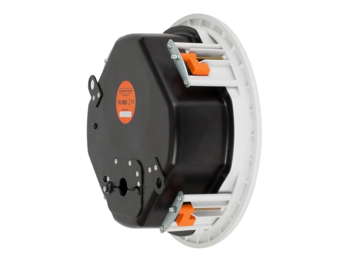 Korzystając z technicznej wiedzy i znajomości akustyki, dzięki którym jej „domowe" serie głośników hi-fi są tak popularne, firma Monitor Audio zastosowała w modelu Pro-80LV 8" głośnik niskotonowy z membraną MMP II oraz wyjątkową, złoconą kopułkę o średnicy 1". Efektem jest znakomity dźwięk oraz doskonała czytelność mowy, sprawdzające się w publicznych systemach dystrybucji dźwięku. Głośnik wyposażony został w transformator dopasowujący do linii 70/100 V i może pracować w wielogłośnikowym systemie zasilanym pojedynczym kanałem wzmacniacza. Dzięki 16 Ω przełącznikowi można połączyć dwa, trzy lub cztery głośniki w układzie równoległym lub szeregowym. Przełącznik siły głosu pozwala instalatorom ustalić maksymalny poziom SPL w takich miejscach, jak restauracje, łazienki i poczekalnie.