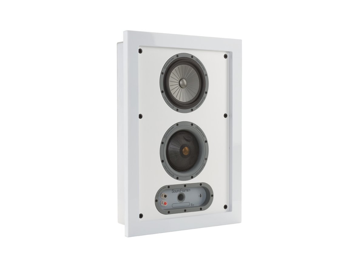 Głośnik SoundFrame 1 In-Wall stosuje pełnopasmową konfigurację trójdrożną z obrotowym modułem IDC z 4 calowym przetwornikiem średniotonowym/1 calowym przetwornikiem wysokotonowym oraz z 6.5 calowym przetwornikiem niskotonowym C-CAM.