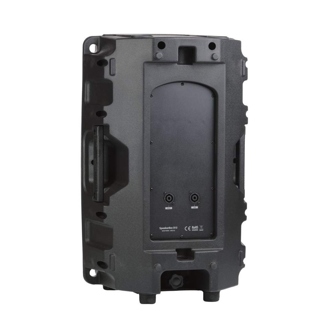 Speaker Box D12 dwudrożne 12-calowe głośniki pasywne z tworzywa sztucznego. Lekka i łatwa w transporcie, plastikowa szafka z oczkami do zawieszania. Gniazdo słupkowe do stojaka głośnikowego. 12-calowy głośnik niskotonowy i 1,5-calowy głośnik wysokotonowy, impedancja 8 Ω. Wewnętrzna zwrotnica 2-drożna pozwala na podłączenie tych głośników do wzmacniaczy bez jakiejkolwiek obróbki dźwięku. Złącza wejściowe i łącza Speakon. Obudowa w kolorze czarnym z perforowaną metalową kratką. Speaker Box D12 przeznaczony jest do zastosowań mobilnych i stacjonarnych i jest idealnym wyborem dla małych dyskotek czy pubów.