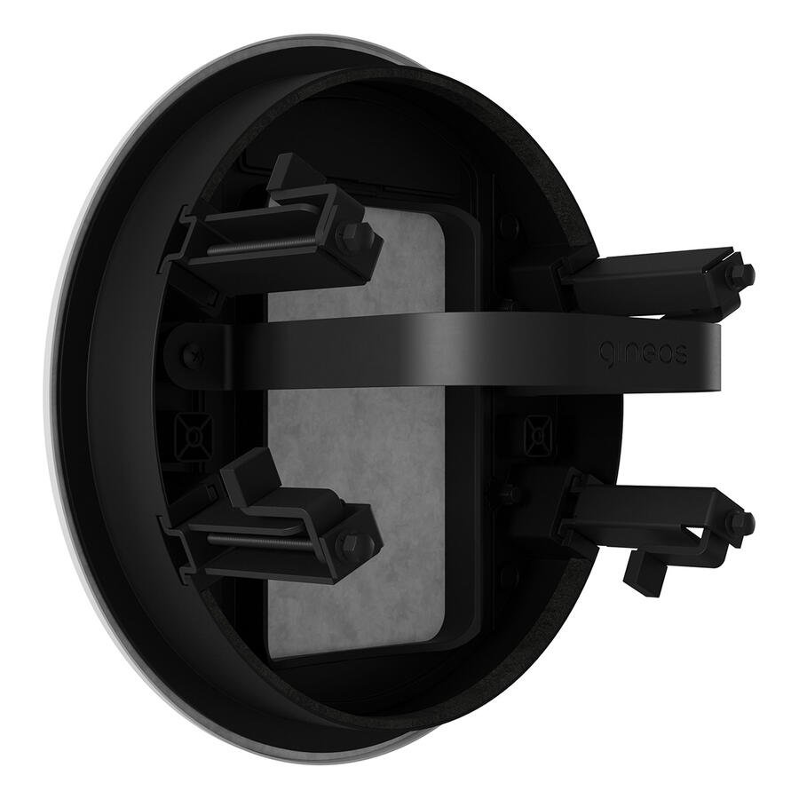 System Gineos umożliwia profesjonalną instalację głośników Sonos Era 100, One, One SL, Play:1, Denon Home 150 oraz Denon Home 150 NV w sufitach i ścianach. Wytrzymały i wysokiej jakości adapter integruje się z sufitami i ścianami za pomocą eleganckiej i bardzo niskiej osłony magnetycznej.