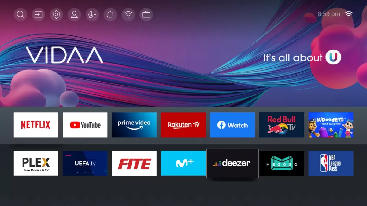 VIDAA to inteligentna, spersonalizowana platforma multimedialna, łącząca najlepsze treści globalnych dostawców premium z najpopularniejszymi programami lokalnymi. Opiera się na rekomendacjach, generowanych na podstawie serwisów video, z których korzysta użytkownik. Szybkie uruchamianie pozwala zaoszczędzić czas i w kilka chwil uzyskać dostęp do ulubionych treści.Oferuje topowe platformy streamingowe (m.in.: Netflix, YouTube czy Amazon Prime Video), sport na żywo, aplikacje, muzykę i sztukę – szybko i w doskonałej jakości obrazu oraz dźwięku! VIDAA udostępnia szeroką gamę treści, w tym m.in.: filmy, programy telewizyjne, pogodę, wiadomości, filmy dokumentalne, sport, transmisje na żywo oraz informacje lokalne. Nowoczesny interfejs, pozwala błyskawicznie znaleźć to, czego szukamy, dzięki intuicyjnej nawigacji i łatwemu przeglądaniu.