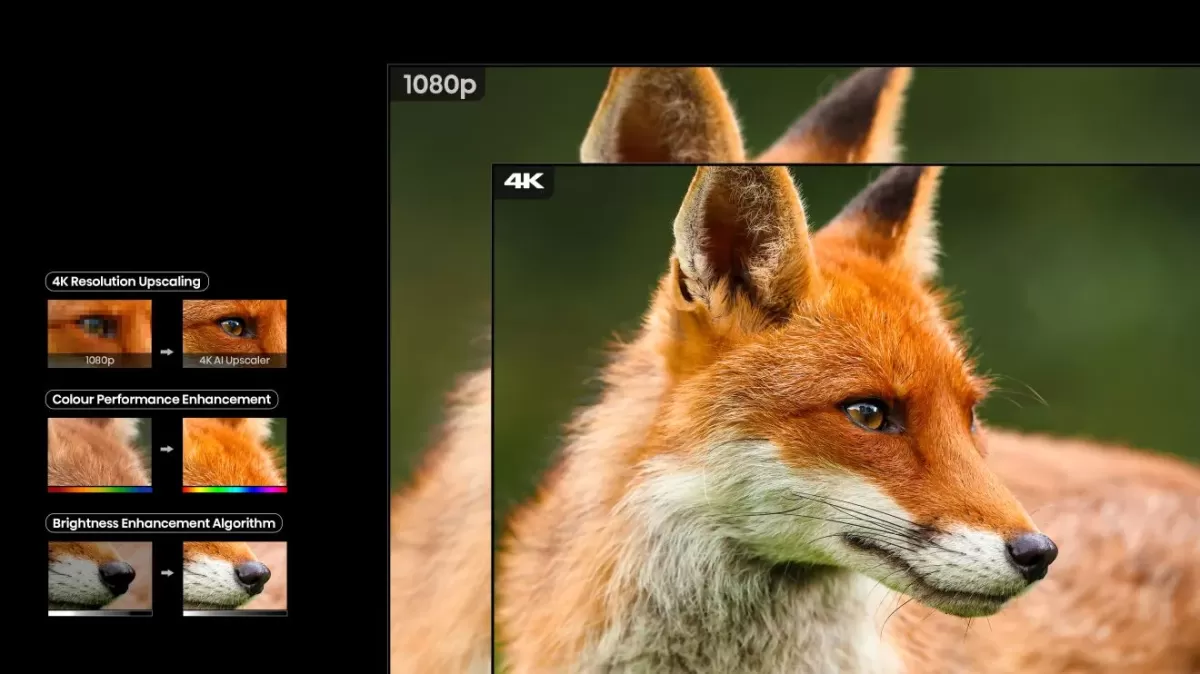 Przygotuj się na obraz o ultrawysokiej rozdzielczości 4K. Zaawansowany system DLP kontroluje 2,07 miliona mikroluster, aby zapewnić ostre obrazy 4K o przekątnej do 150 cali. 4K AI Upscaler podnosi zawartość o niskiej rozdzielczości na nowy poziom przejrzystości, zapewniając szczegółowe obrazy i krystalicznie czystą precyzję w każdym pikselu.
