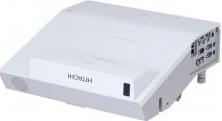Projektor Hitachi Ultra Short Throw CP-AX2504 o krótkiej ogniskowej. Odległość projekcji od przedniej części projektora wynosi 0,103-0,369m. Projektor idealny do klas i małych sal.