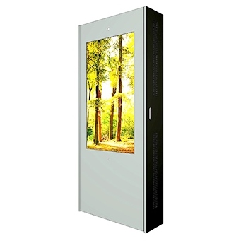 Hyundai H551SD/H551SDI to 55″ wolnostojący zewnętrzny dwustronny totem przystosowany do pracy w każdych warunkach pogodowych (IP 66) w temperaturach od -30°C do +50°C. Wbudowany panel LCD S-PVA typu Public Display posiada podświetlenie CCFL i jasność 2300 cd/m2 zapewniajacy obraz o rozdzielczości Full HD 1920×1080, który jest ostry i wyraźny nawet w słońcu. H551SD/H551SDI posiada automatyczną kontrolę jasności, programowalny system chłodzenia i ogrzewania oraz wandaloodporną obudowę z hartowaną, antyrefleksyjną szybą.