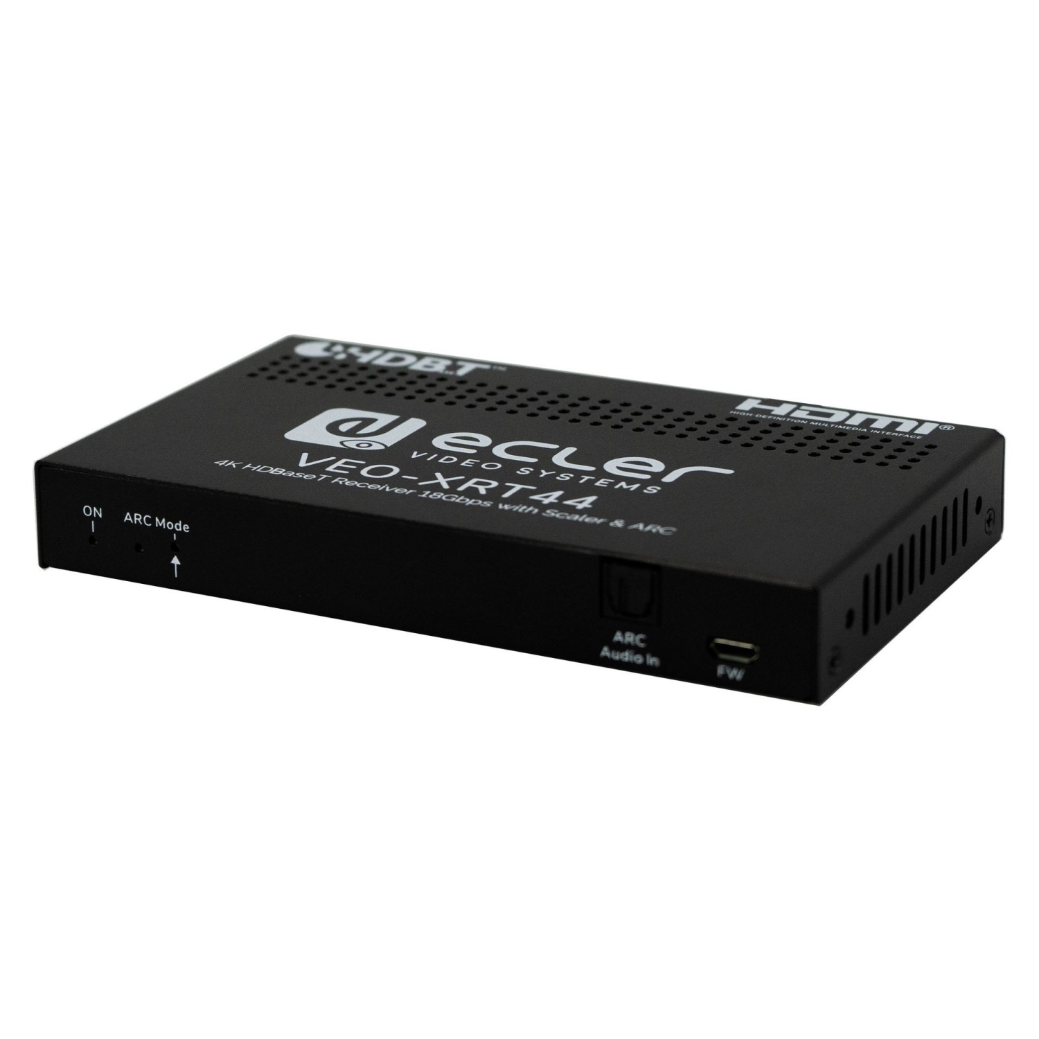 Ecler VEO-XRT44 to profesjonalny odbiornik HDBaseT ( z HDR) do HDMI 2.0. Rozdzielczość do 4K 60 Hz 4: 4: 4 ( do 18 Gb / s) oraz upscaling fullHD do 4K. Dwukierunkowy PoH (Power Over HDBaseT). Dwukierunkowy PoH (Power Over HDBaseT),EDID (DIP switch), Audiobreakout, ARC, dwukierunkowe IR i RS-232. Wymiary (SxWxG) 140 mm × 84 mm × 20 mm, waga 275g