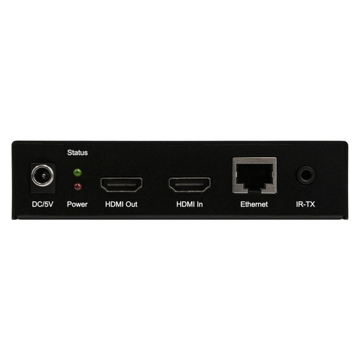 lotniska i stacje metra, oraz wszelkie inne instalacje w których najistotniejsze jest zmniejszenie obciążenie sieci, a ewentualne opóźnienia są mniej istotne. Urządzenia mogą być zasilane z PoE lub zasilaczy zewnętrznych zasilaczy dołączonych w zestawie. Poza sygnałem HDMI przekazywane jest również dwukierunkowe RS-232 oraz szerokie pasmo IR co umożliwia wygodne sterowanie źródłami i odbiornikami. Intuicyjny panel użytkownika