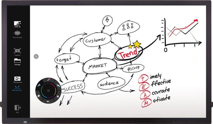 55TC3D firmy LG umożliwia rysowanie, zapisywanie i przechwytywanie notatek, a także podłączanie, wyświetlanie i kontrolowanie różnych urządzeń, ma rozdzielczość ekranu 1920 x 1080 (FHD) i pojemnościowy ekran dotykowy. Ułatwia to udane spotkanie, zachęcając uczestników do swobodnego przesyłania swoich pomysłów na ekranie za pomocą intuicyjnego narzędzia dotykowego i pisania.