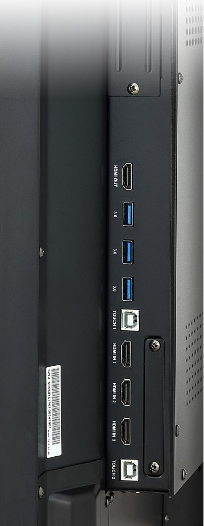 - Interfejs: HDMI (3), RGB / wejście audio, wejście RS232C, RJ45, USB 2.0 (3, przód: 2ea, dół: 1ea Tylko do aktualizacji oprogramowania), USB 3.0 (3), wyjście dotyku (USB2.0,B Type) (2),HDMI (1), wyjście optyczne / wyjście audio