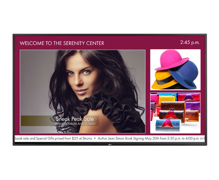 Dodatkowe funkcje tego publicznego wyświetlacza obejmują tryb Tile (do 15 x 15), blokada klawiszy, czujnik temperatury, PIP / PBP, wybór DPM, konfiguracja automatyczna / faza, pamięć automatyczna / pamięć źródłowa, pozycja / rozmiar, jasność / kontrast / podświetlenie , i Clear Voice II