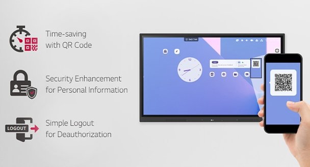 Kod QR na ekranie głównym skraca czas przygotowania do zajęć, umożliwiając osobistą weryfikację urządzenia. Użytkownicy mogą logować się do różnych aplikacji na LG CreateBoard, w tym Google Drive i OneDrive, za pomocą jednej weryfikacji QR bez dodatkowego procesu logowania. Po zakończeniu lekcji użytkownicy mogą po prostu kliknąć przycisk "Wyloguj", aby się rozłączyć, zmniejszając ryzyko wycieku danych osobowych.