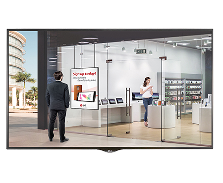 55-calowy wyświetlacz typu Fan-Less Display firmy LG jest monitorem o wysokiej jasności, który można zainstalować w oknach sklepów detalicznych na ulicach. Małe zużycie energii jest możliwe dzięki panelowi M + i bez wentylatora. W celu zwiększenia kontrastu i wyraźniejszego obrazu można kontrolować podświetlenie w określonych obszarach ekranu.