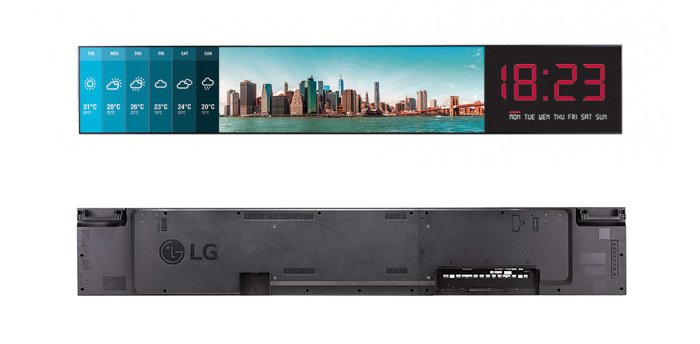 86BH7C 86 "Ultra-Stretch UHD Display z LG posiada natywną rozdzielczość 3840 x 600 zapewniającą szczegółowe obrazy i szerokoekranowy wyświetlacz o formacie 58: 9, a funkcja PBP (obraz obok obrazu) pozwala na podzielenie ekranu na cztery części do instalacji krajobrazowych lub portretowych Można edytować zawartość, która składa się z jednego filmu wideo i kilku obrazów (do 20) za pomocą Edytora SuperSign. Wyświetlacz obsługuje układanie boczne dla instalacji 1x4 lub 4x1 (krajobrazowych lub portretowych) i do 4x4 instalacja z konfiguracją Daisy chain. Połączenie szeregowe umożliwia sterowanie i monitorowanie urządzeń, rozpowszechnianie zawartości, a nawet aktualizowanie oprogramowania.