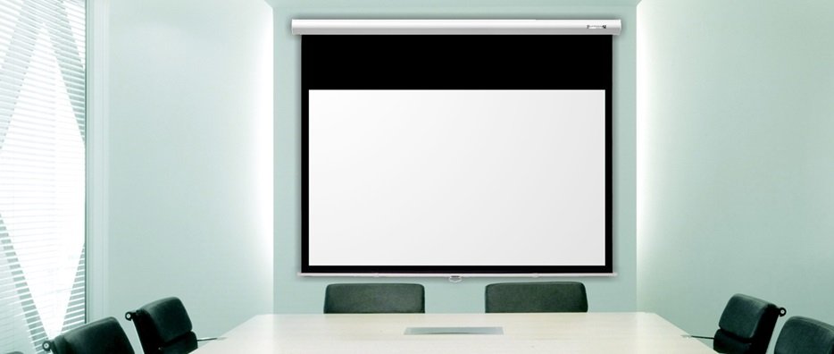 Ręcznie rozwijany ekran projekcyjny z linii profesjonalnej PREMIUM, z systemem powolnego zwijania