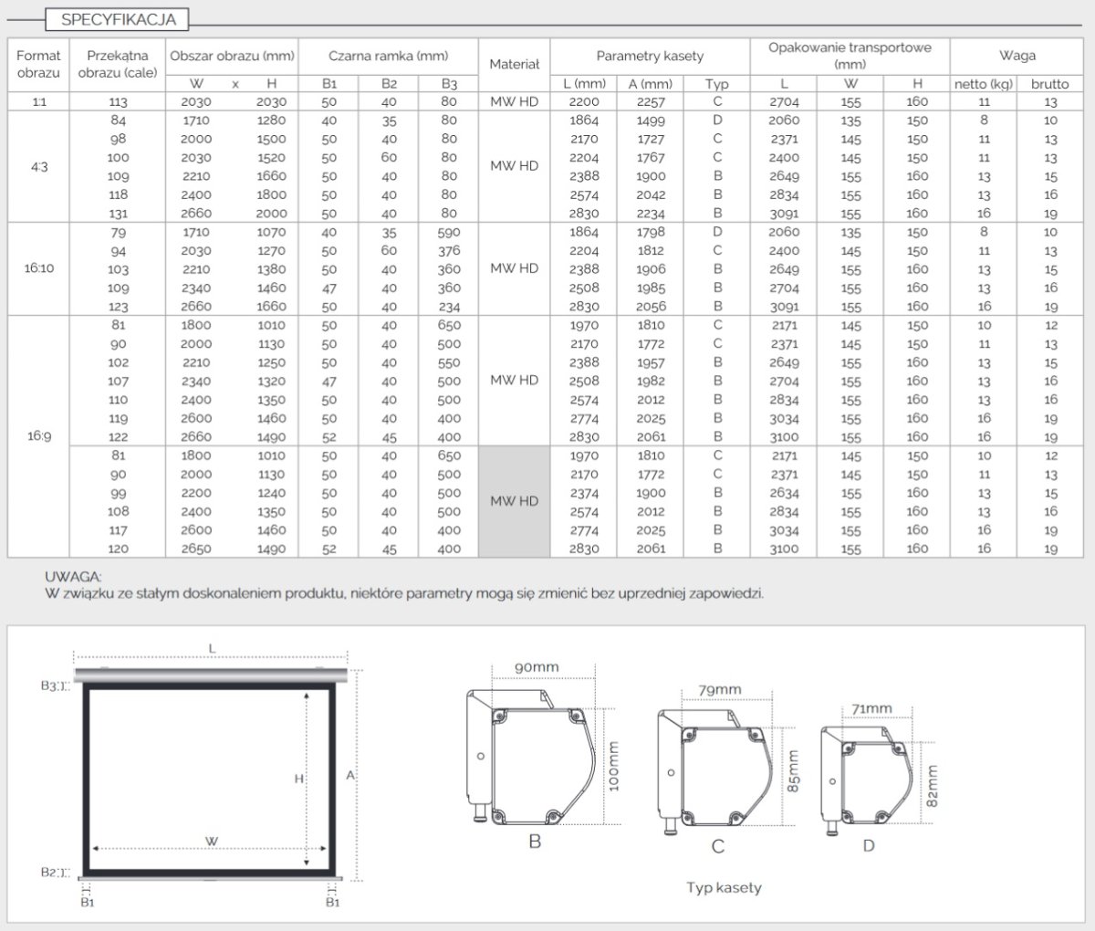 UCHWYTY, WINDY I OBUDOWY DO EKRANÓW PROJEKCYJNYCH