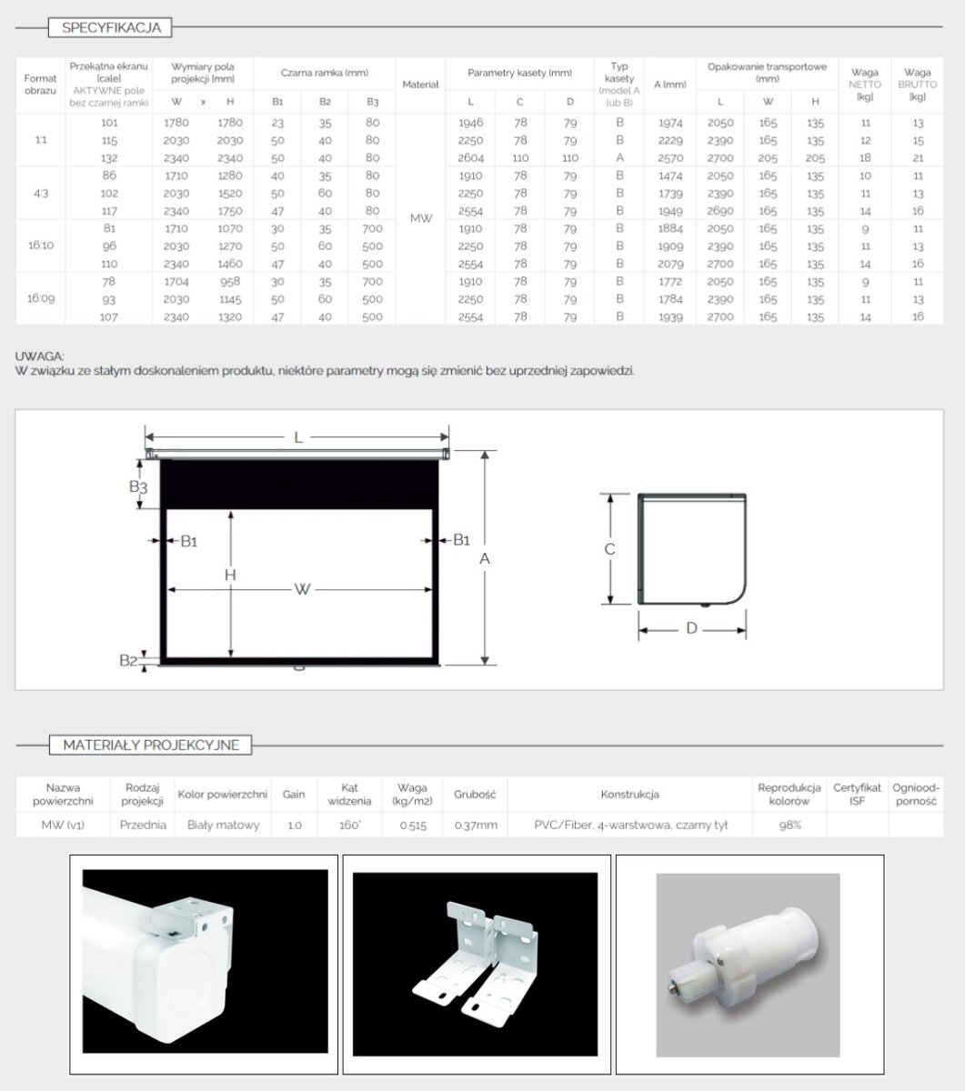 UCHWYTY, WINDY I OBUDOWY DO EKRANÓW PROJEKCYJNYCH