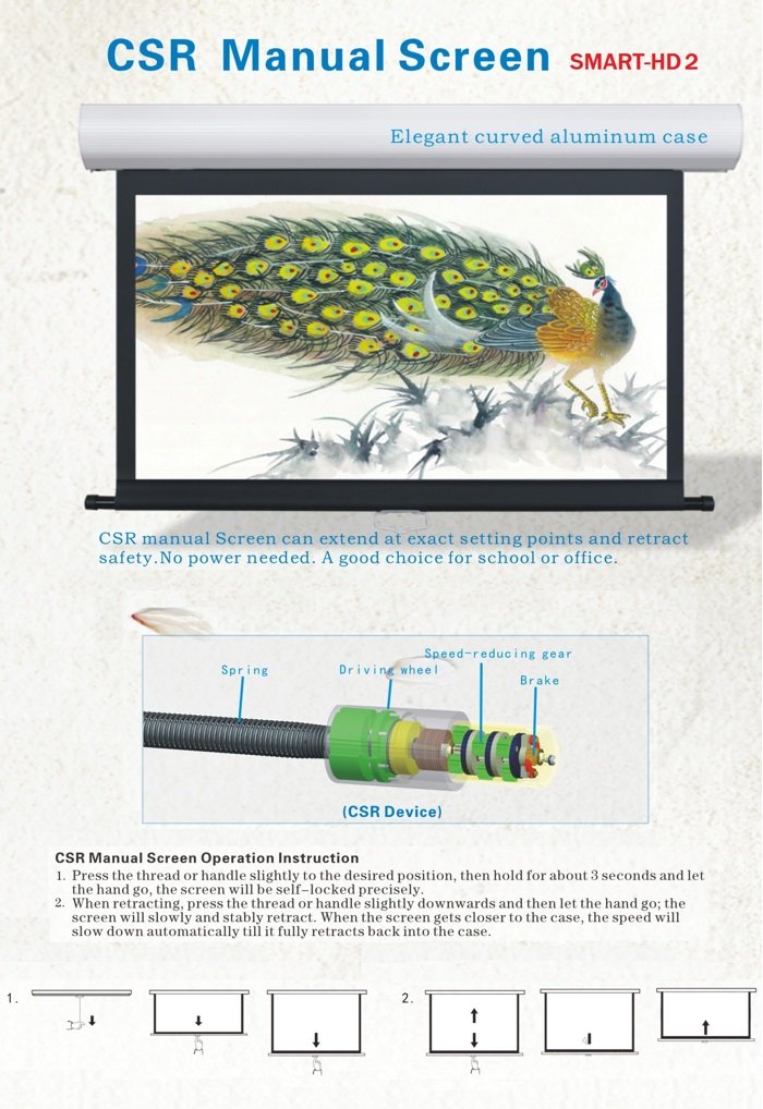 Ekran manualny seria Smart-HD2 kasetowy ścienno-sufitowy także do zabudowy indywidualnej w suficie podwieszanym lub wnęce