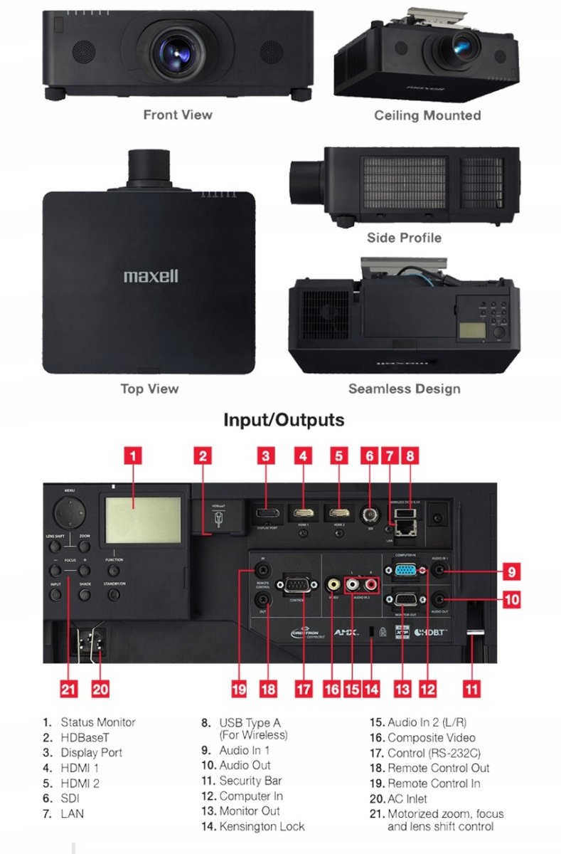 Projektor LCD Maxell MCWX8751B (czarna obudowa) doskonale nadaje się do zastosowań w średnich i dużych obiektach. Zapewnia ostry i wyraźny obraz w rozdzielczości WXGA z jasnością 7500 ANSI lumenów. Projektor oferuje 4 wejścia cyfrowe, takie jak HDBT, 2 wejścia HDMI (zgodne z HDCP) i port wyświetlacza. MCWX8751B wykorzystuje również unikalne technologie Maxell, takie jak ACCENTUALIZER, HDCR, Image Optimizer i zarządzanie kolorami, aby zapewnić wyjątkową jakość i wyrazistość obrazu.