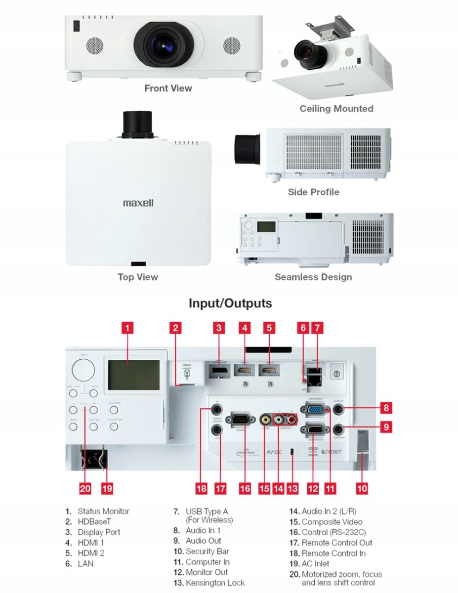 Optional Accessories, , USB wireless adapter USB-WL-11N, Wireless pen tablet TB-1, Optional Lenses: Ultra-short-throw FL-710M, Short-throw USL-701M, Short-throw FL-701M, Short-throw SL-712M, Standard-throw ML-713M, Long-throw LL-704M, Ultra-long-throw UL-705M