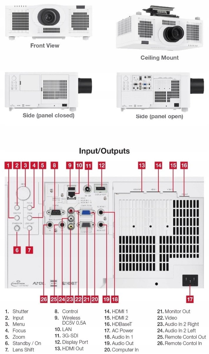 Digital Input, , HDMI x 2 (HDCP 2.2 compliant) HDBaseT x 1 3G SDI x1 Display Port x 1