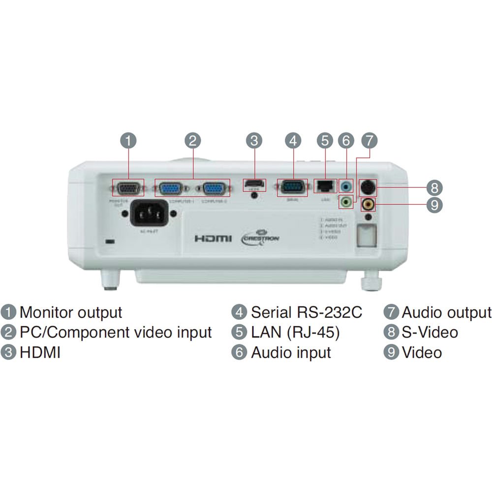 1x HDMI In, 2x VGA In, 1x VGA Out, 1x Composite Video In, 1x S-Video In