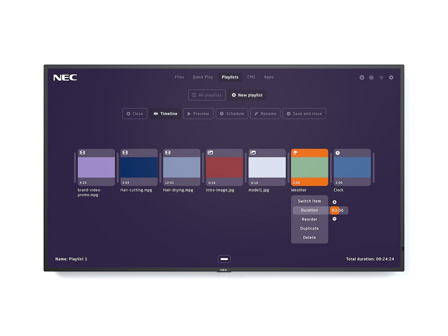 Oprogramowanie MediaPlayer firmy NEC bazuje na fabrycznie zainstalowanym module SoC Raspberry Pi, a przy tym jest gotowe na technologie przyszłości i uaktualnienia. Dostępna jest zdalna obsługa w instalacjach zarówno jedno-, jak i wielomonitorowych, z możliwością elastycznego korzystania z wielu typów multimediów oraz funkcji planowania, które gwarantują inteligentne zarządzanie treściami. Jeśli konieczne są specjalne funkcje, MediaPlayer firmy NEC pozwala na łatwe przełączanie się bezpośrednio do zintegrowanych systemów zarządzania treściami.