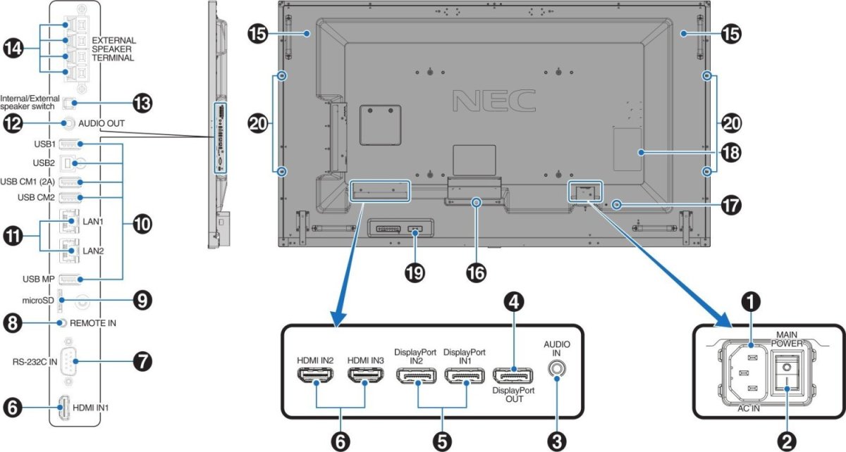- Gotowy na przyszłe wyzwania dzięki technologii Open Modular Intelligence – możliwość rozszerzenia możliwości monitora w dowolnym czasie dzięki perfekcyjnej integracji jednej z opcji NEC takich jak moduły mikrokomputerów OPS typu slot-in czy Raspberry Pi bądź interfejsy sygnałów do przesyłania zawartości i łączenia z komputerami.