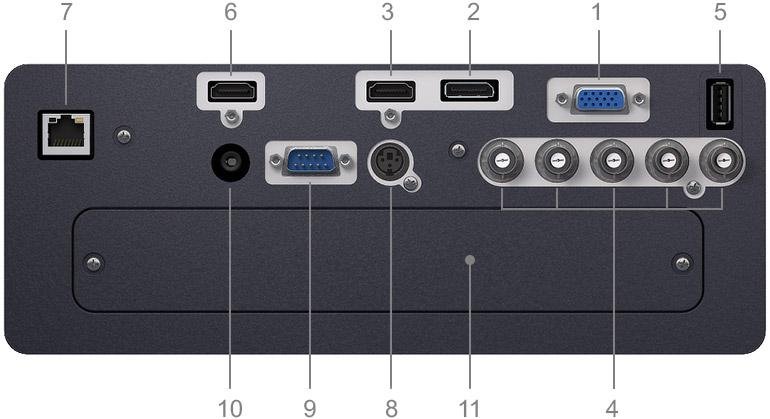 Control Wejście: 1 x 9-pinowe D-Sub (RS-232), Ethernet; 1 x Ethernet shared with HDBaseT; 1 x stereofoniczne gniazdo mini jack 3,5 mm (pilot kablowy)