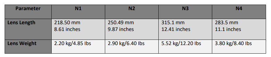 Każdy z obiektywów Norxe został zaprojektowany tak, aby uzyskać rozdzielczość piksela 5,4 mikrona, aby zapewnić zgodność z chipem 4K DLP.