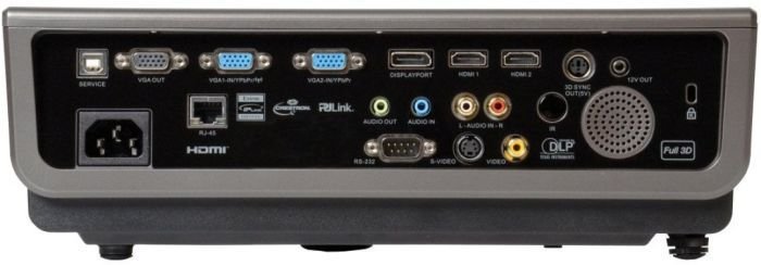 - Przyłącza 2 x HDMI, DisplayPort, 2 x VGA (RGB/YPbPr), S-Video, Composite, 2 x Audio In (RCA/3.5mm), Audio Out 3.5mm 3.5mm, VGA Out, RJ45, RS232, USB(Remote Mouse), +12v Trigger, 3D-Sync